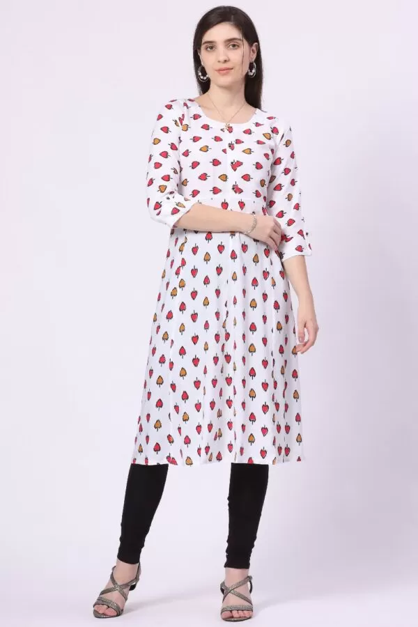 Foryourself White with Red and Mustard print work Kurti